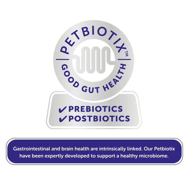 Zdrowie przewodu pokarmowego i mózgu są ze sobą nierozerwalnie powiązane. Petbiotix zostały opracowane przez ekspertów, aby wspierać zdrowy mikrobiom. Mikrobiom jest niezbędny do prawidłowego funkcjonowania przewodu pokarmowego, osi jelitowo-mózgowej i interakcji jelit z resztą ciała. Petbiotix pomagają wspierać naturalną równowagę w jelitach Twojego pupila i utrzymują je w najlepszej kondycji.